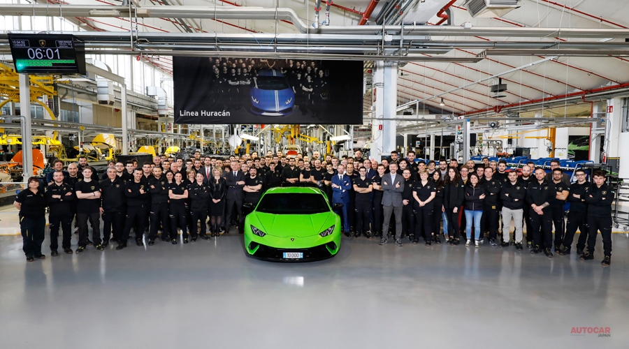 ランボルギーニ・ウラカンが、通算1万台の製造を達成しました。2014年に販売開始されてから4年目の大台超え。昨年は、世界中で2642台がセールスされています。1万台目は、デイトナ24時間のクラス優勝車カラー。