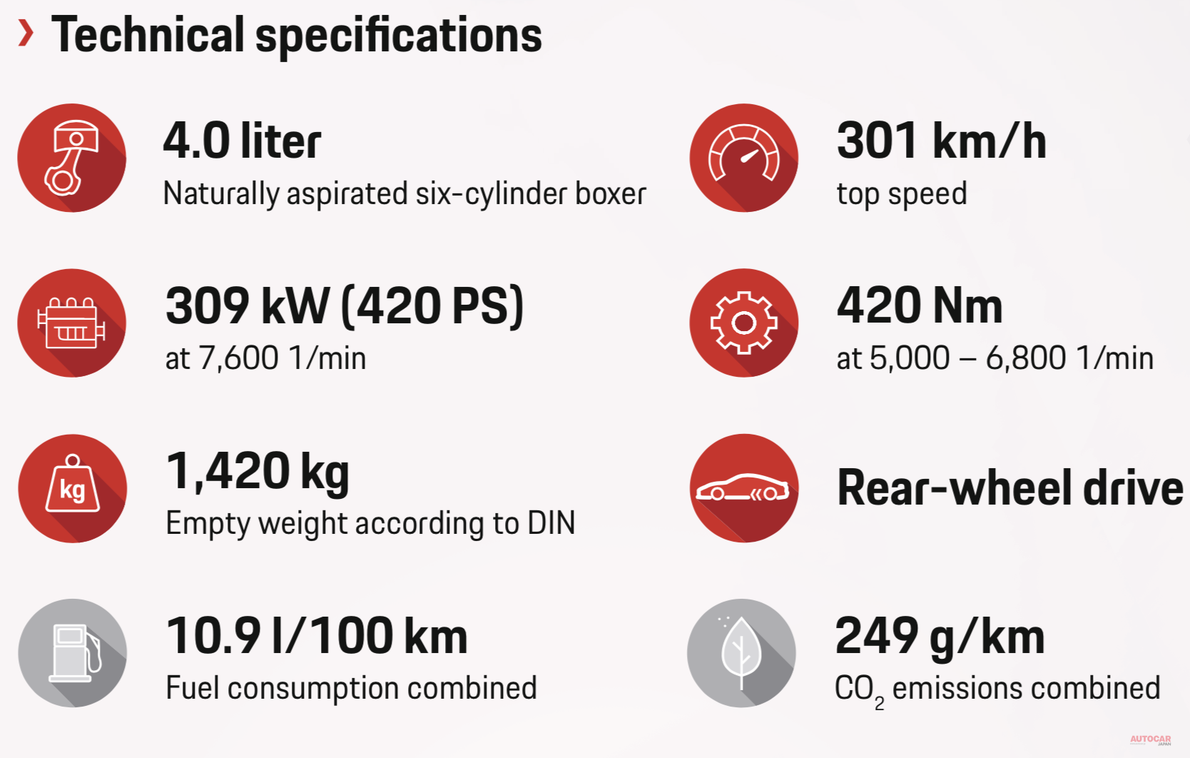 ポルシェ718スパイダー/718ケイマンGT4 4.0ℓ自然吸気は420ps マニュアルのみ