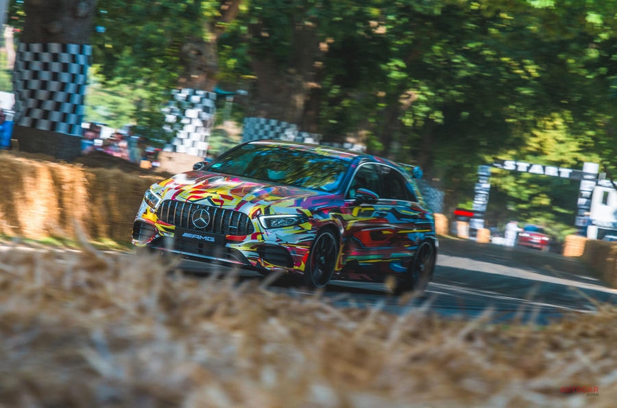 「メルセデス-AMG A45 S」が、グッドウッド・フェスティバルの会場に現れました。4気筒ながら421psを発揮するメガハッチ。実車写真をご覧ください。
