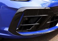 青いボディに黒いホイールを組み合わせたアピアランスはまさに精悍。全高はGTIの1475mmに対し1460mmと15mm低く、タイヤサイズはいずれも235/35R19で同サイズとながら、ホイールのデザインと色がそう見せるのか、Rのほうが迫力あるように感じられる。
