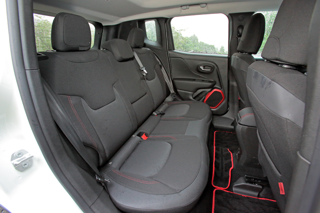 それがおそらくはオンロードの乗り心地にも効いている。トレイルホークは当たりの柔らかいオール・シーズン・タイヤが標準となることもあるけれど、悪名高い西湘バイパスの目地段差を苦もなく通過する。バネは硬めながらハーシュネスは皆無だ。静粛性も高い。1835kgもある車重も重しになっている。