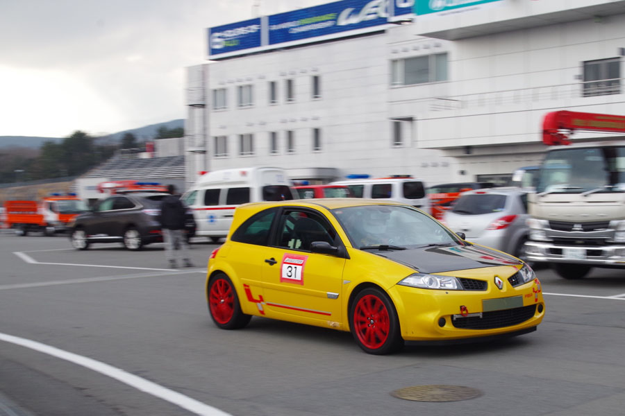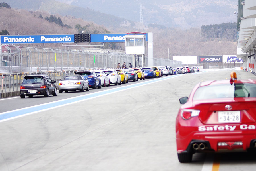 今回の走行会では48台の参加車が1本目(30分)、2本目(45分)の2つの走行枠を占有走行した。その合間には今回もゲスト参加したレーシングドライバー番場 琢選手http://bamzo.jp/による“番場教室”を開講。参加者は富士のコースを走っての疑問点などについてのアドバイスを受け、2本目の走行に活かしていた。