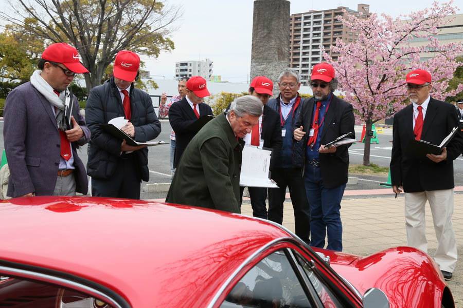 コンクールの審査は5人の委員に加え、審査委員長はレオナルド・フィオラヴァンティ氏が務めた。審査はオリジナル度だけではなく、普段からいかに、オーナーが愛情をこめて維持してきた点も加味して行われた。審査が始まるとフィオラヴァンティ氏はデザイナーらしくボディのチリを始め、カムカバー等の色や内装までチェックし、不明点があるとオーナーに質問するほどの力の入れようだった。審査が終わるとオーナーからのリクエストでサインに快く応じていた。