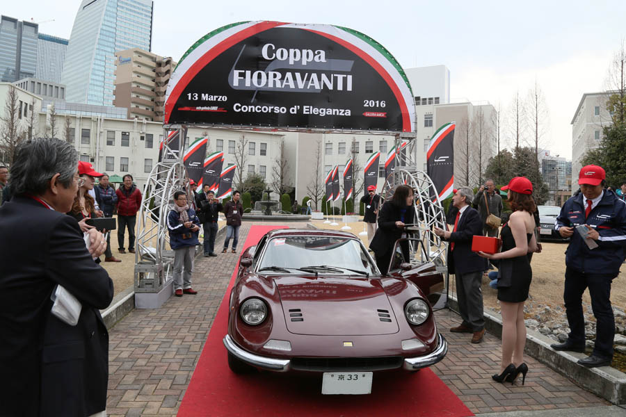 審査が一段落したところで特別賞の発表が行われた。ゲートまで自走進むデモランが行われ、ここでフィオラヴァンティ氏からオーナーに特製のプラークが贈られ、協賛各社の副賞が手渡された。フェラーリ・ジャパン賞は後藤清雄氏所有のフィオラヴァンティが特許を持つ回転式ルーフ開閉方式を備える2005年型フェラーリ・スーパーアメリカに贈られ、コーンズ賞はマラネッロで新車を購入し現在も乗り続けている秋田良子さん1973年型のディーノ246GTが選ばれた。フィオラヴァンティ賞には、フィオラヴァンティ氏が学生の時から課題としている高い空力性能を備える4ドアセダンの理想型を具現化した1978年型ランチア・ガンマ・ベルリーナを所有する岡本雅隆氏が選ばれた。余談だが空力性能に優れるこのスタイリングは、現在のクルマでも採用されている。