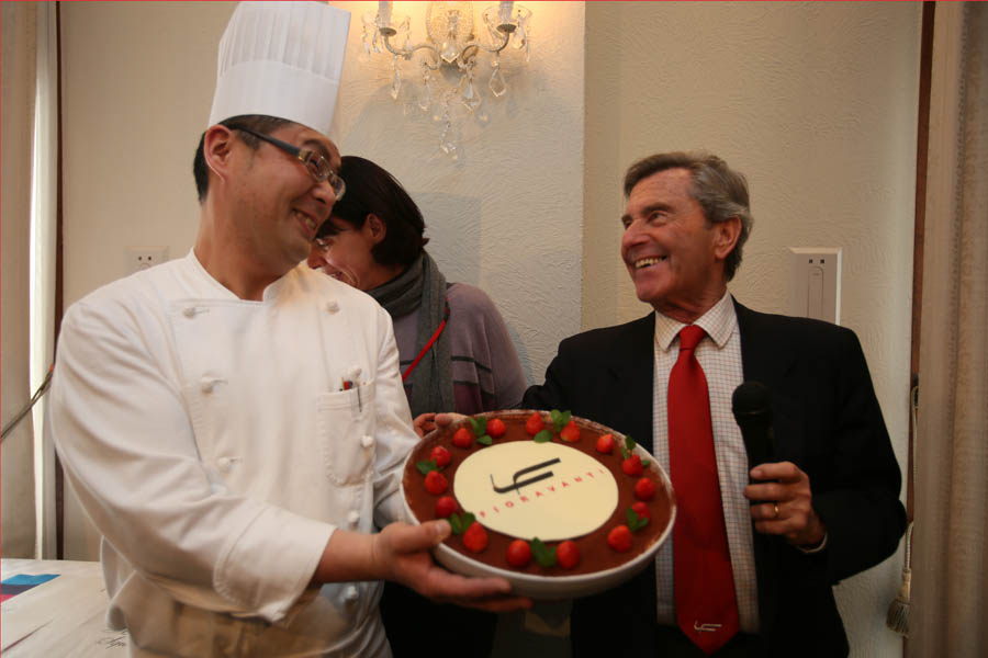 表彰式が終わるとレストランからフィオラヴァンティ氏に、サプライズで特製のドルチェが振る舞われた。