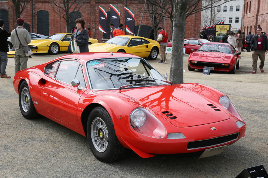 会場の入口にはディーノ206/246GTが属するクラスAが展示された。