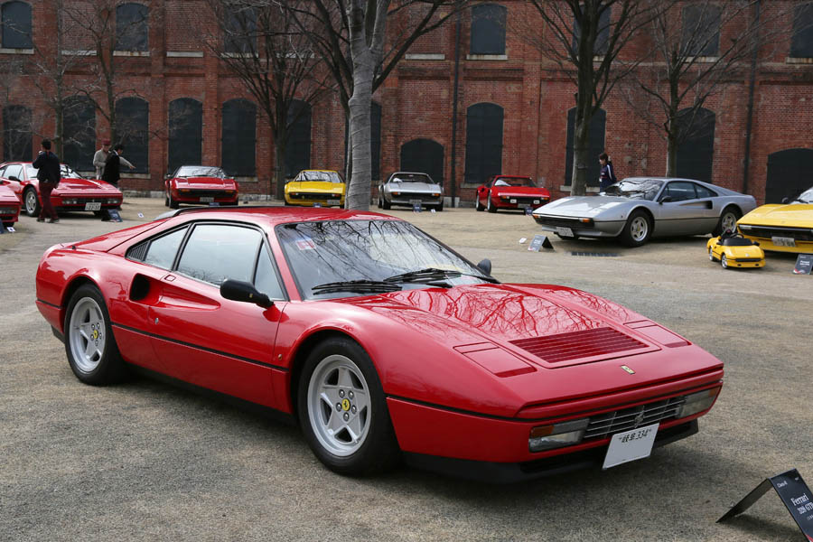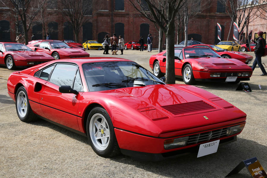 参加車両はグループごとに並べられた。フェラーリ288GTOが存在感を放つ。