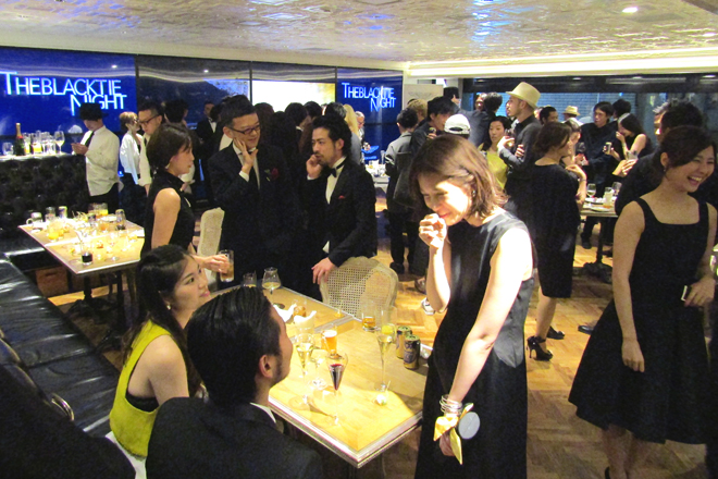 今回のパーティは、ブラックタイをつける機会が少ない日本の男性に、スタイリッシュでスマートな一夜を提供するもので、次世代型セレクトショップとして知られるnano・universe 東京の全フロアを貸切って取りおこなわれた。