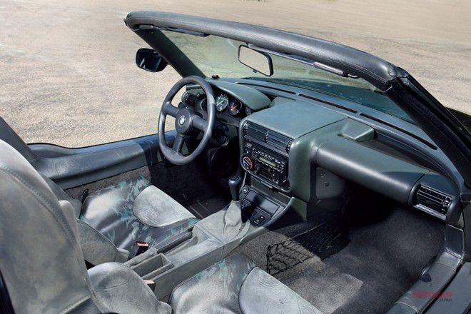 ドアがあるべきところを跨いで乗り込むのには違和感を感じるし、インテリアの多くは3シリーズの流用なのだけれど、それでも3本スポークのステアリングホイールやバイクからインスパイアされたメーター周りのデザインなど、Z1に特別感を与える仕掛けは十分だ。