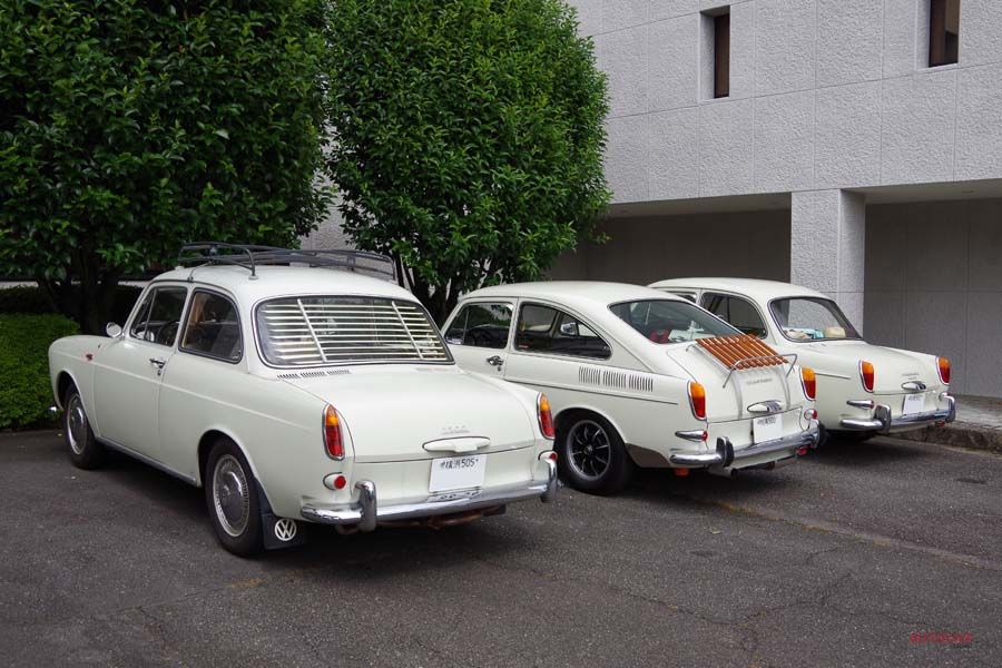 駐車場の一角が小さなタイプ3ミーティング状態に! 充分に旧いタイプ3だが、この会場にいるとものすごくモダンに見えてしまう。