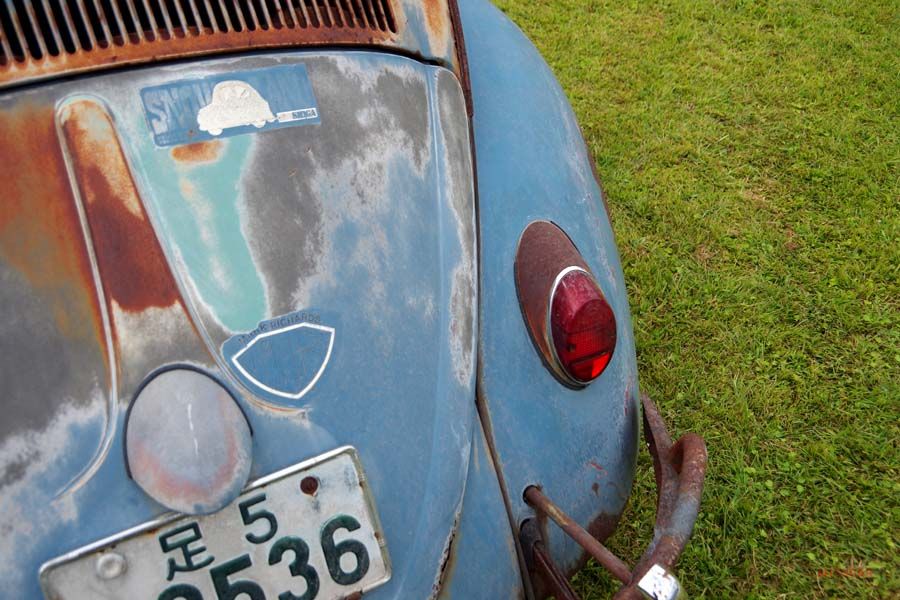 ビギナーにとってビンテージ・タイプ1を見分けるにはリアビューがイチバン? 非常に稀少な原初の “スプリット・ウインドウ” の荘厳さよ!