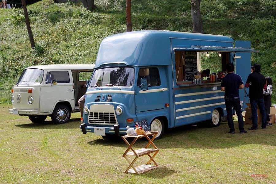 会場で美味しい昼食を提供してくれたケータリングは、なんとレイトバンと非常に珍しいルノー・エスタフェのハイルーフバンだった。