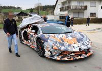 アヴェンタドールSの最新版である四輪駆動モデルがトレーラーから降ろされる様子が初めて目撃された。このクルマはおそらく以前600台限定で発売されたSVの後継となるモデルであろう。