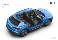 最低地上高はQ3と変わらないが、ボディパネルが異なるため、車体のヒップポイントが下がっている。さらに大型ルーフスポイラーや、専用デザインの前後バンパー、グロスブラックのトリム・パッケージなど、ディテールでもQ3との差別化が図られている。LEDヘッドライトは標準装備で、オプションとしてマトリックスLEDヘッドライトも用意される。
