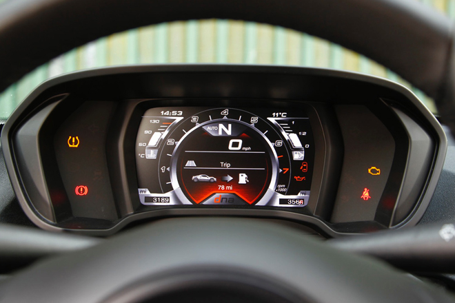 コクピットは、ロータス・エリーゼやエキシージほど剥き出しではなく、高い素材が使われている。また、ドライバー・フォーカスしたコクピット・レイアウトでもある。但し、シートは腿の下のサポートが欠如しているように思えた。フラット・ボトムのリムを持つステリング・ホイールも、同様にあまり取り扱いに優れるとは思えなかった。しかし、パドル・シフトやデジタル・インストルメントは良好なフィーリングをもたらしてくれた。