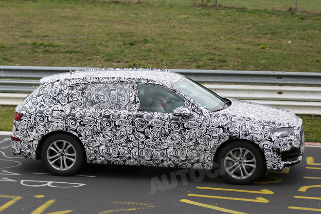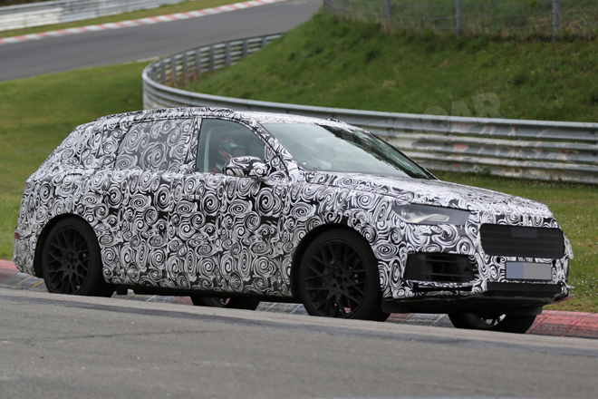 次世代のアウディQ7がニュルブルクリンクでテストされている。これまでのテスト・モデルよりも大きなフロント・グリルと明るいクラスターが特徴だ。