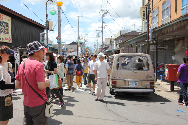 日曜日のミーティングは、約6時間で29000人の来場があり、商店街は人であふれていた。