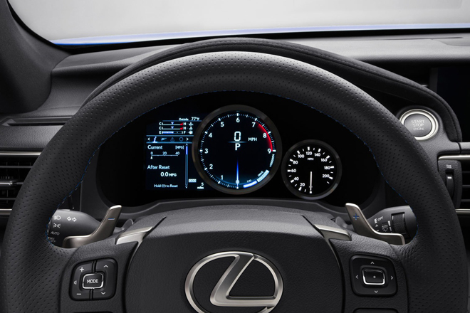 電子制御のステアリングも緻密で正確。手のひらで路面状況の全てを掴むことができると言っていい。V8エンジンから聞こえるサウンドも、時に陶酔しそうになるほどで、操舵フィールも低速で鋭く、高速でも苦労を強いないレクサス流の流儀を貫いている。