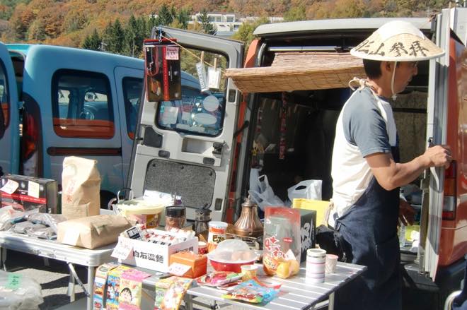 ルノー・エクスプレスの荷台をフルに使ってフリーマーケットを楽しむ。