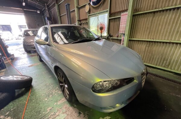 ミナーバの三和です。 アルファ・ロメオ156セレスピード。ボディカラーが美しいですね。 車検整備で入庫です。 アイドリングが...