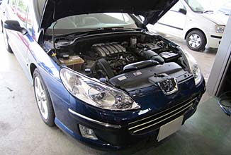 長時間走行していると加速が鈍くなり、警告音と警告灯が点灯するという事で入庫のプジョー407のV6モデル。
