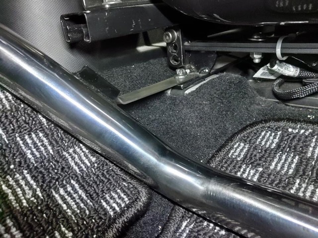 取り付けは左右のシートベルト取り付け部と、シートレール左右の4点止めにして、強度を出しています。