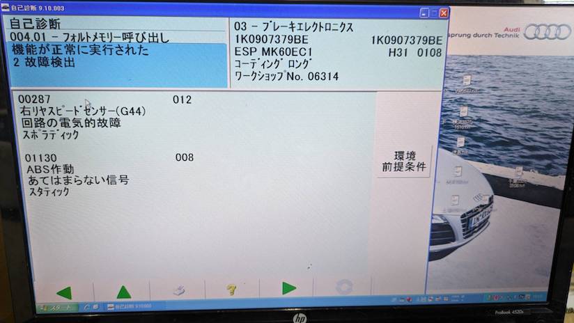 警告灯はABS・ESP・サイドブレーキが点灯していました。