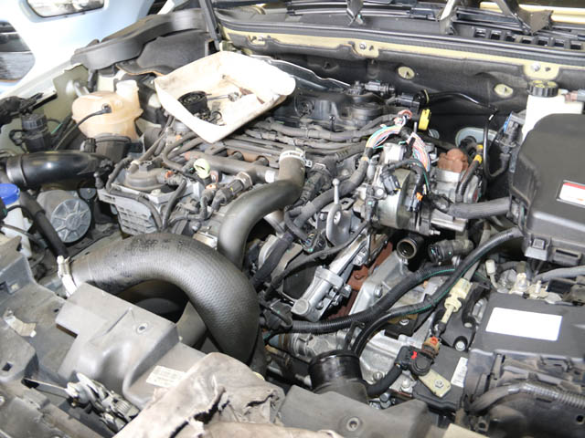 最近の車はエンジン装飾のカバーが付くため、患部に辿り着くまでにひと手間増えてしまいますね。