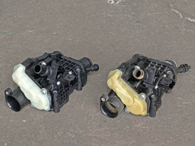 写真左が新品のサーモスタットで、右がそれまで付いていたもの。