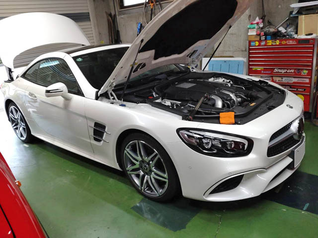 メーター内に「バックアップバッテリー故障」の警告が出たメルセデス・ベンツSL550の修理です。
