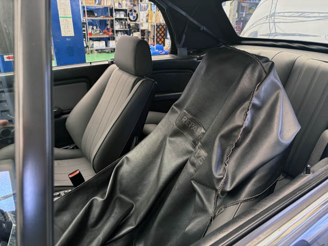 先日販売したBMW E30型の325iカブリオレが車検で入庫しました
